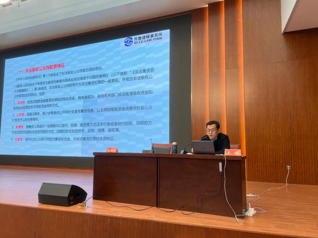 【 济南总所 】齐鲁律师事务所高级合伙人姜鹏律师走进禹城开展防范非法集资专题培训