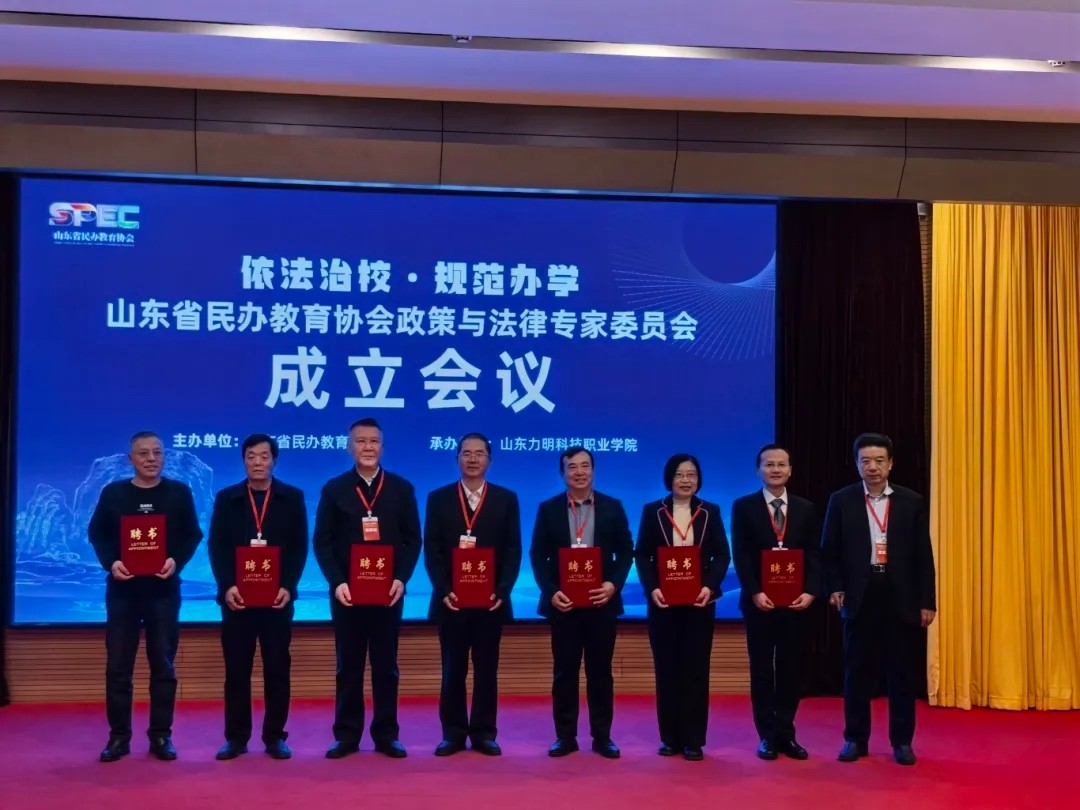 2025年12月27日,山东省民办教育协会政策与法律专家委员会成立大会在山东力明科技职业学院隆重召开。本次大会以“依法治校·规范办学”为核心主题,搭建政策解读、法律赋能、经验共享的高端平台,为山东民办教育高质量发展注入强劲动力。在成立大会上,齐鲁律师事务所管委会副主任赵晓亮受聘担任该专家委员会副主任委员。