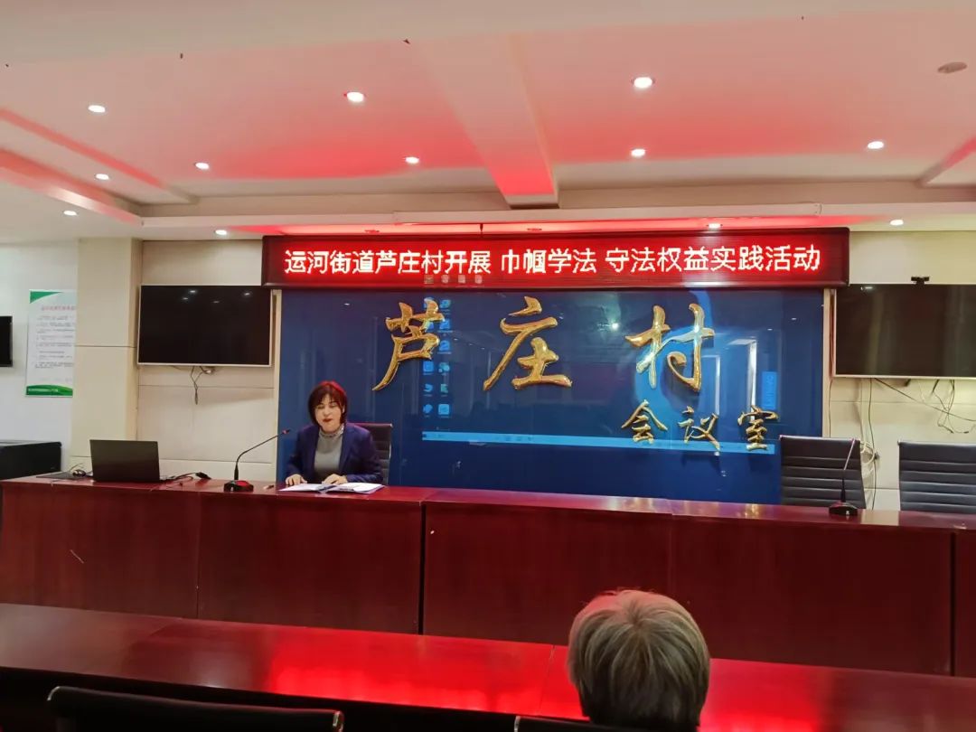 阳春三月,万物复苏。在“三八国际妇女节”来临之际,为更好的维护妇女合法权益,3月5日齐鲁律师事务所(德州分所)妇委会主任刘淑文律师在运河街道办事处芦庄村开展“巾帼学法 守法权益实践活动”。