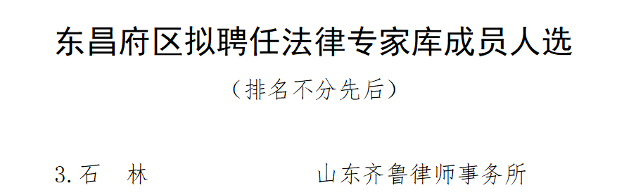 【 济南总所 】齐鲁律师事务所石林律师先后受聘聊城市东昌府区、茌平区党政一体法律专家库成员