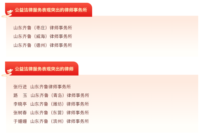 【 潍坊分所 】喜报!齐鲁律师事务所多家分所及律师获省律协公益法律服务表彰