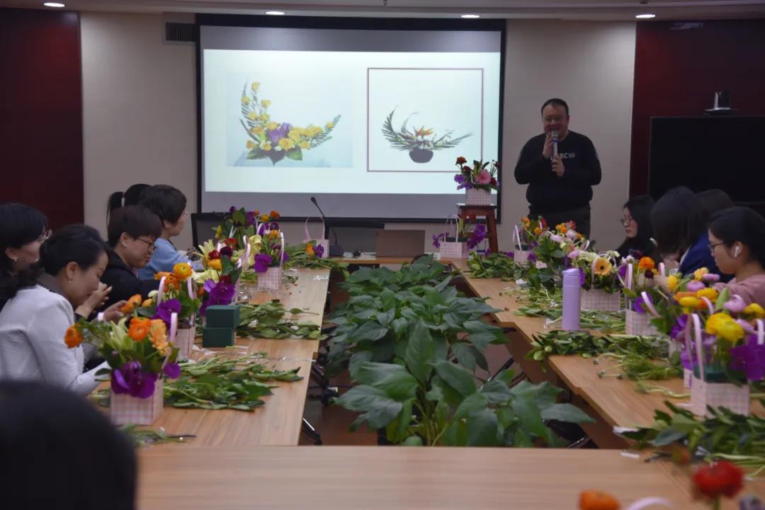 花艺培训师从花材、养护、色彩搭配等方面,详细介绍了插花的艺术造型要素和技巧手法,大家边学边做,发挥创意,精心搭配,享受着亲自创作的乐趣和插花艺术带来的快乐。活动现场色彩绚丽、花香四溢,充满着春天的气息。
