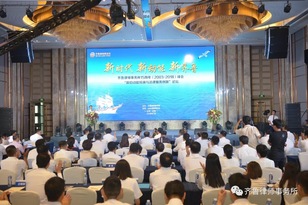 由齐鲁律师事务所主办,山东省律师协会支持的齐鲁律师15周年峰会暨“新旧动能转换与法律服务创新论坛”于2018年7月7日在济南隆重举行。