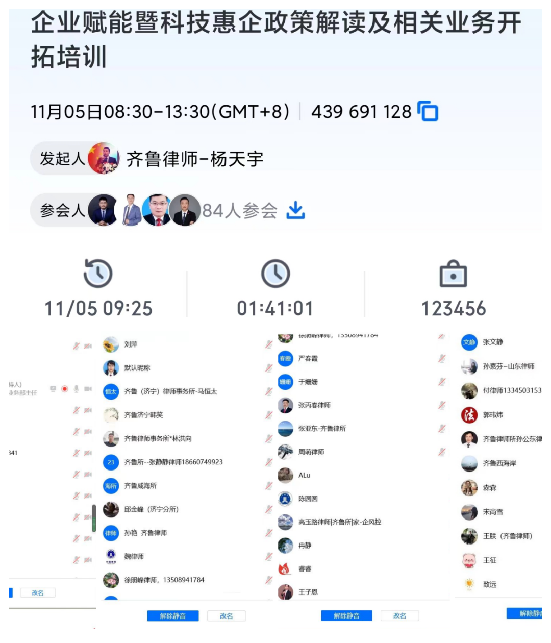 会议由资本市场业务部主任杨天宇主持,高级合伙人张建国、韩军、王霖,合伙人张凯、马广鑫、张艳艳,律师王江涛、刘瑛、王永莲、杨荣海、王鑫、刘麒等现场参会;同时,为了响应疫情政策,本次培训还开通了网上在线直播,青岛、烟台、潍坊、济宁、东营、枣庄、威海、德州、西海岸、淄博、滨州等分所同事们80余人参加了线上培训。开拓了律师服务思维和业务服务范围,取得了预期的效果。