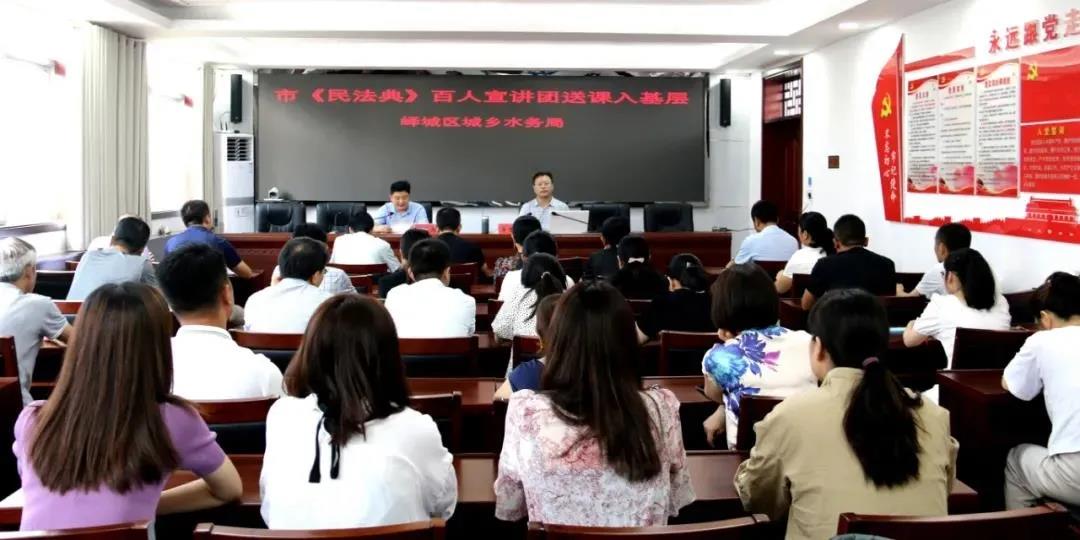 8月28日,齐鲁(枣庄)律师事务所主任李君友律师为峄城区水务局举办“市《民法典》百人宣讲团送课进基层”做民法典专题讲座。峄城区水务局及所属单位50余人参加,局长李玉伟主持报告会。